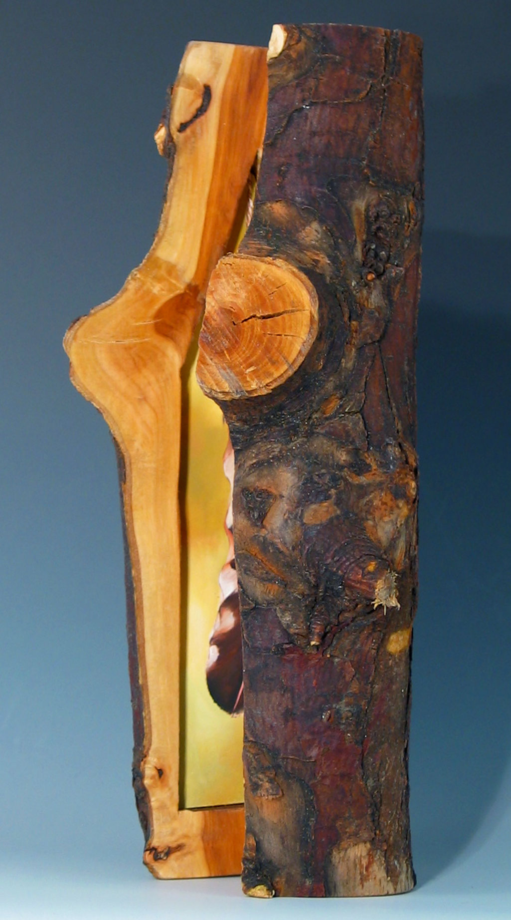 oil on gessoed Davey board in apple wood log