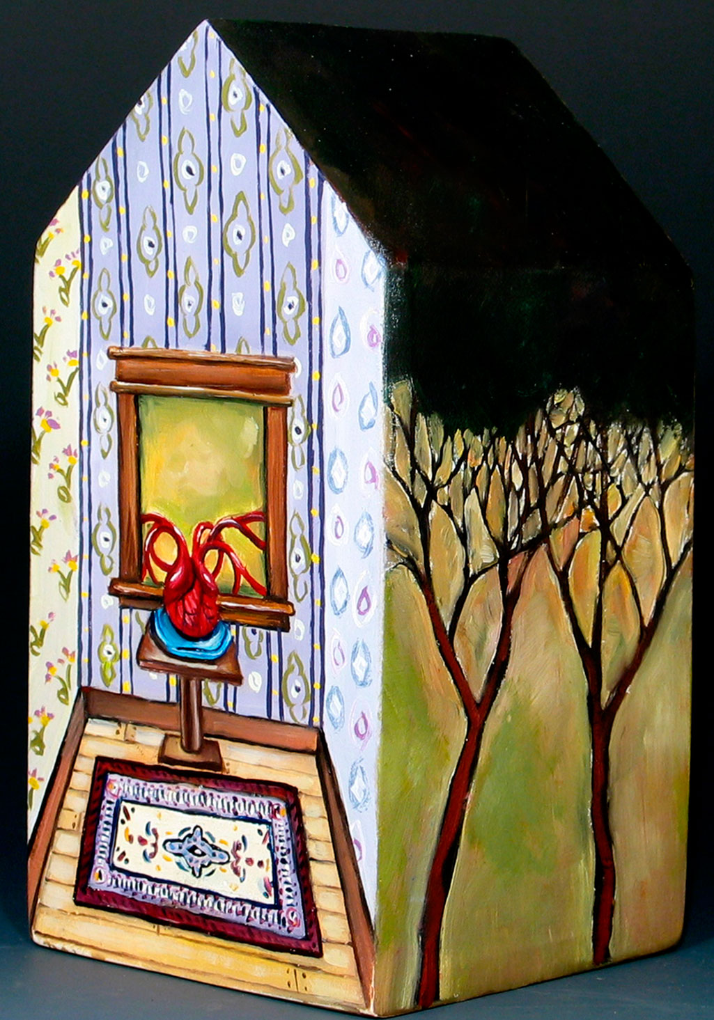 10.016 Heart Window House oil on gessoed Davey board, 3 by 3.25 by 6 inches (exclusive of wooden base) (details) See other houses See other work available for sale To contact me about the purchase of other work, call 406-683-5493 or email me at info@cathyweber.net