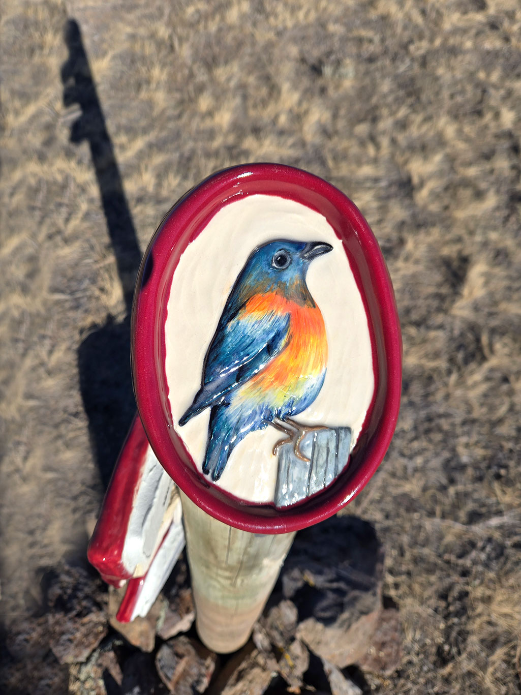 My trail markers have been made since the inception of our high trails in 2017. I am an artist who exhibits widely, lives and works in Dillon, and loves hiking on our trails. The ceramic junction markers with images of local flora and fauna, as well as the lettered route indicators, are made of porcelain clay, underglazed, coated with a clear glaze, and fired to cone 6 (2232 degrees F). All the artwork is copyright © by Cathy Weber.