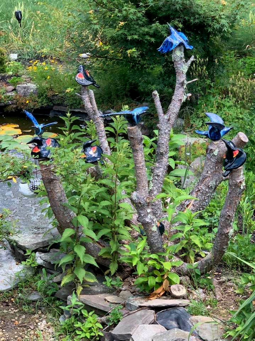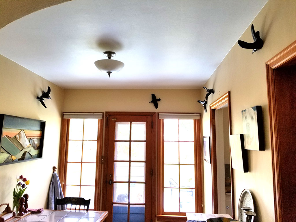 I have installed a variety of work since 2007 when I started making ceramic birds. I have installed work in galleries such as my show Overstory/Understory, as well in domestic spaces weather it’s a garden or the heart of a home.